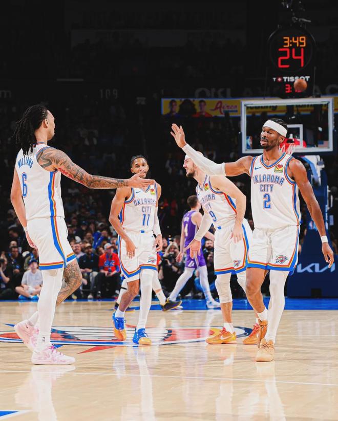 亚历山大场均得分和正负值,都是联盟第3。他场均9.3次罚球出手,和班凯罗并列联盟第6,仅次于马瑟林(13)、锡安(11.4)、东契奇(11.1)、字母哥(10.8)和里夫斯(9.9)。最后一问:你觉得雷霆卫冕的机会大吗?